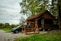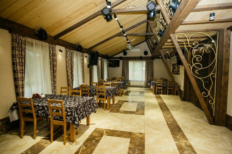 В вашем распоряжении столы, стулья, своя мангальная зона, мусорный бак, рукомойник, а также недалеко расположен туалет. Блюда можно приготовить самостоятельно на мангале, либо заказать в ресторане. А еще перед беседкой есть огромное поле - хоть в футбол играй, хоть воздушного змея запускай. До озера идти 5 минут.