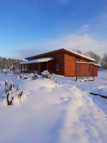 В вашем распоряжении — просторный одноэтажный коттедж с камином. Рядом сосновый и смешанный лес. Никакого шума и соседей, другие домики расположены на расстоянии 50 метров и более. До рыбного озера идти 5 минут.