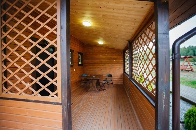 У каждого коттеджа оборудована собственная мангальная зона, в стоимость включено пользование мангалом и шампурами.
