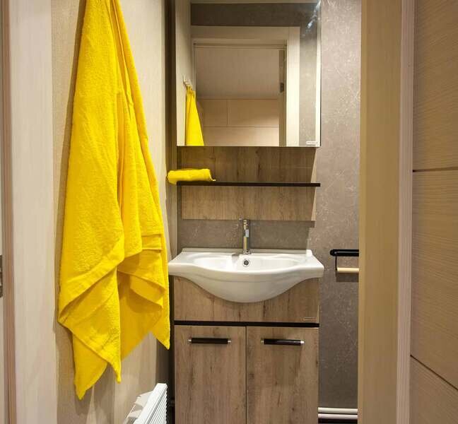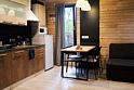 В номере есть все необходимое даже для длительного пребывания: собственная кухня с плитой и холодильником, душ, удобная кровать, стол для приема пищи, комната для сушки лыж, системы хранения вещей.