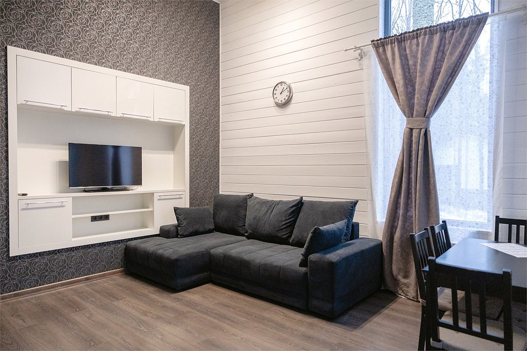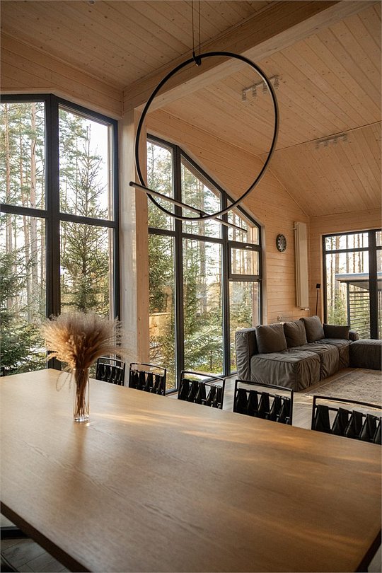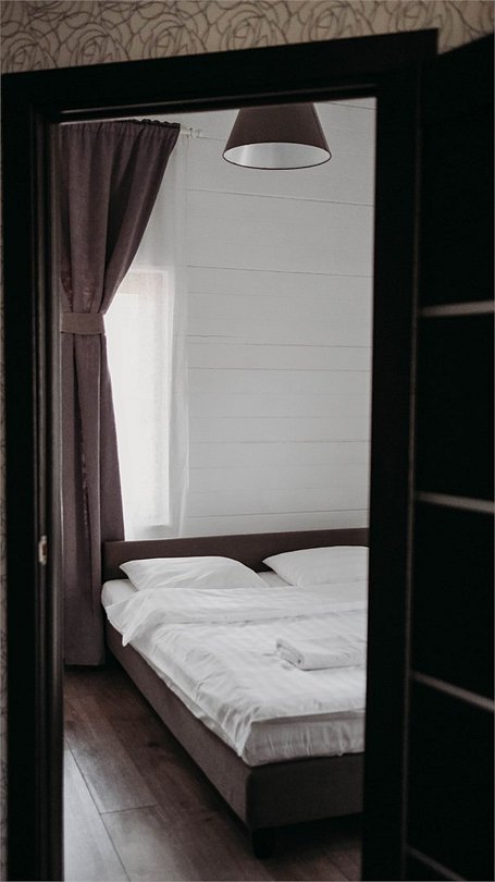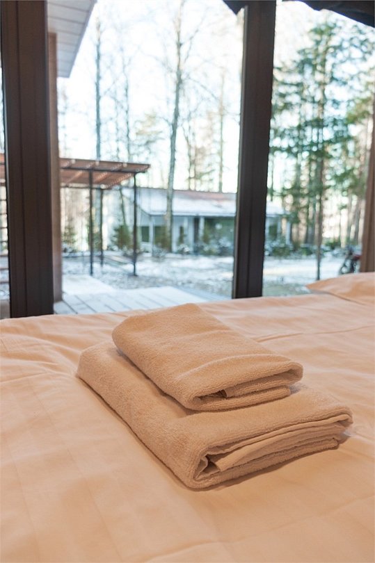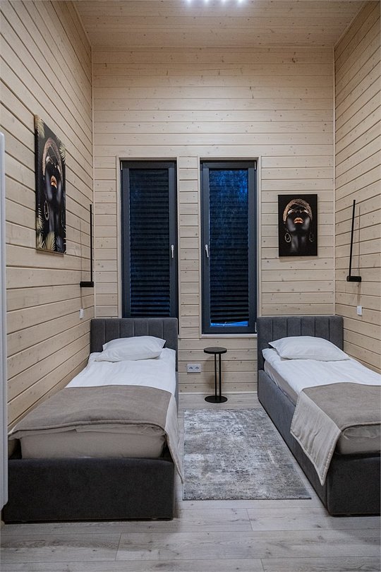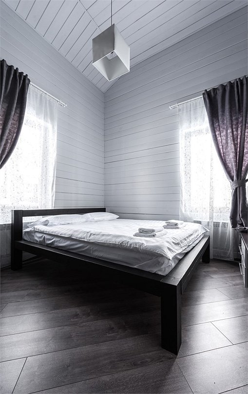 Просторный, светлый и уютный коттедж в скандинавском стиле до 6-ти гостей (4 основных места + 2 дополнительных). Рядом с коттеджем располагается собственная зона для барбекю и парковочное место. В данной категории коттеджа допускается проживание с домашними питомцами максимум до 35 см в холке. Дополнительная плата 1500 р/сутки. При бронировании от 4х ночей предоставляется скидка 50% Комплектация коттеджа: Большая гостиная, совмещенная с кухней, барная стойка Собственная сауна (услуга платная) Изолированная спальня с двуспальной кроватью Изолированная спальня с двумя односпальными кроватями Раскладной двуспальный диван в гостиной Обеденная группа Телевизор, интернет Совмещенный санузел с душем Крытая терраса с отдельным выходом или балкономУслуги и удобства