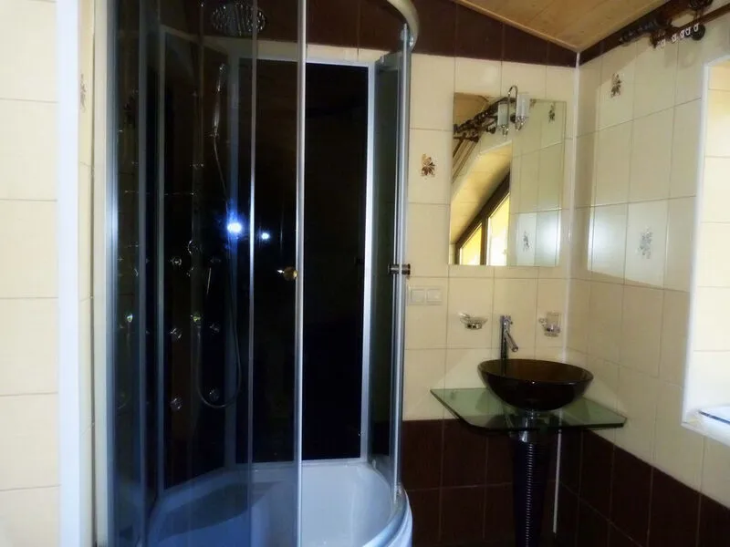 - Ванная комната, оснащенная душевой кабиной, санузлом и раковиной.