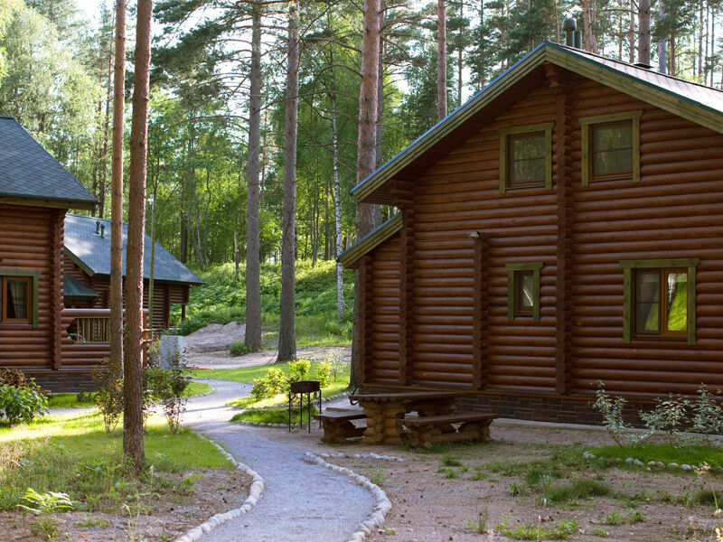 Гостей базы отдыха «Громово Парк» ожидают деревянные двухэтажные коттеджи различной вместимости с каминами, обеспеченные всеми необходимыми удобствами для комфортного проживания.