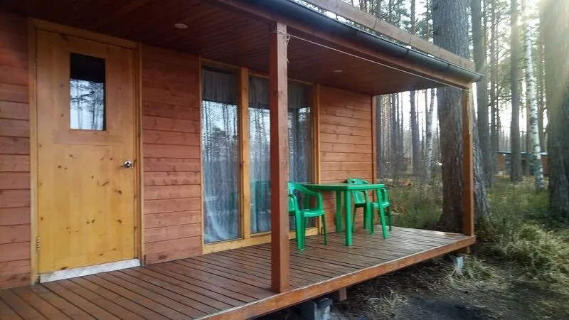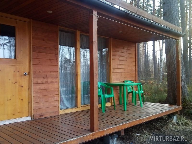 На веранде уличная мебель стол стулья. У каждого дома своя территория 500-600 м. нетронутой природы соснового леса Также имеется свой стационарный мангал и костровище.