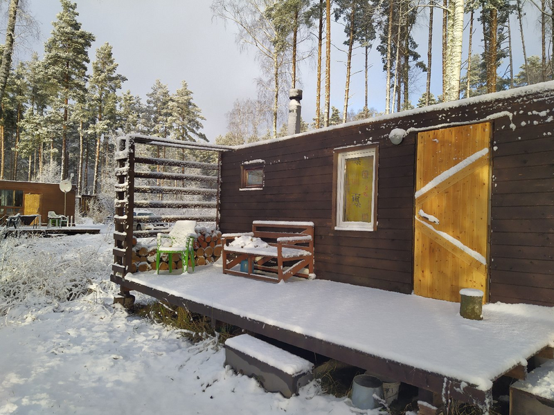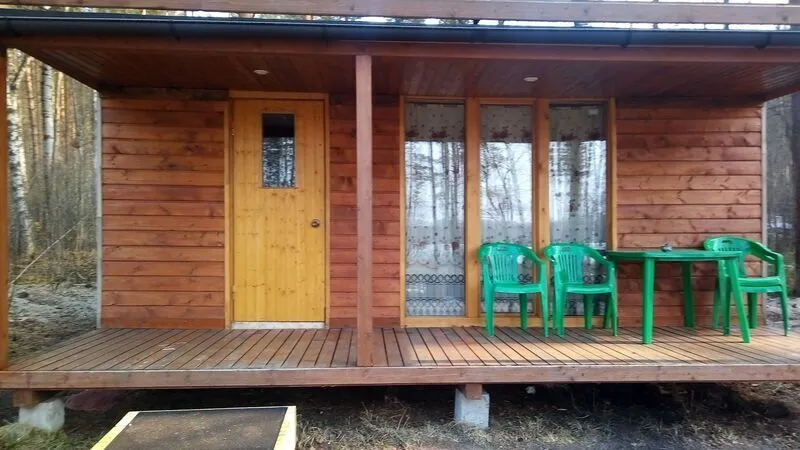 На веранде уличная мебель стол стулья. у каждого дома своя территория 500-600 м нетронутой природы соснового леса Также имеется свой стационарный мангал и костровище.