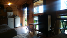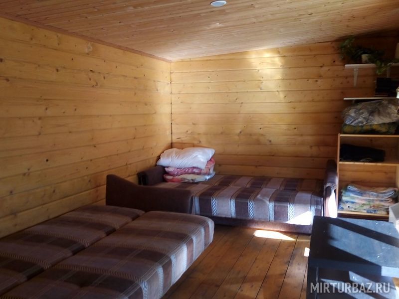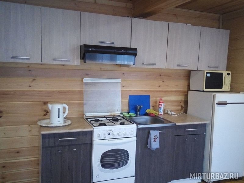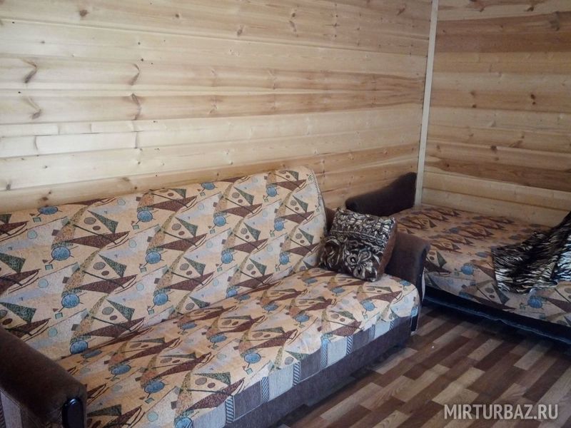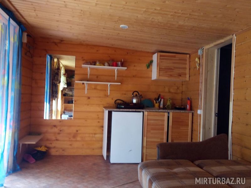 Коттедж студия рассчитан на 4-е места. В наличие 2-а двух спальных дивана комод кухня с необходимой посудой плита, холодильник, санузел.