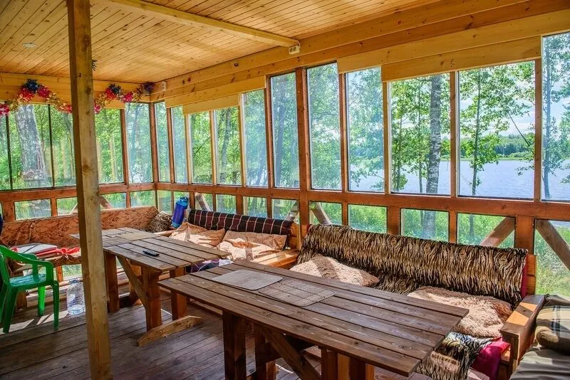 На базе прямо на берегу Кафе-Самообслуживания на 100 кв. м. со своей террасой и местами для отдыха позволит в полной мере насладится незабываемым видом на Вуоксу.