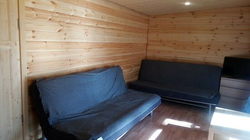 В наличие 2-а двух спальных дивана, комод, кухня с необходимой посудой плита, холодильник, туалет. душевая кабина. Есть возможность поставить дополнительное спальное место.
