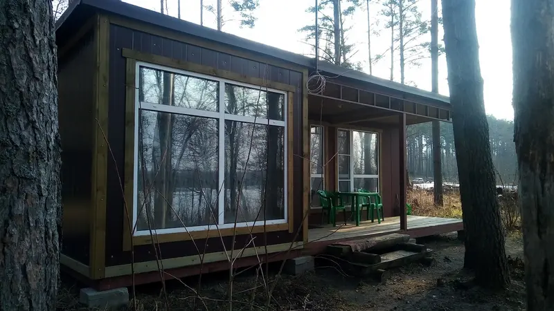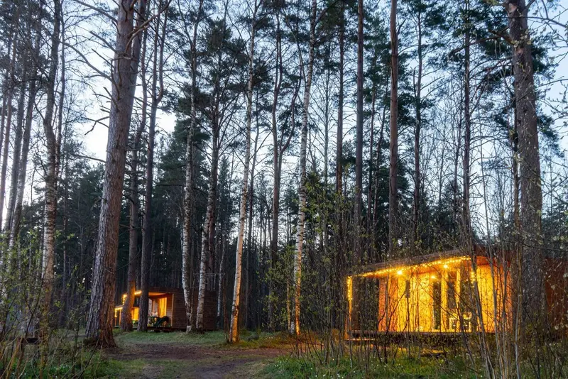 Новые коттеджи по скандинавским проектам с панорамным остеклением и верандой, рассчитанные на 2-4 человека, укомплектованные современной мебелью и кухней, позволят провести незабываемые дни семьям с детьми, парам, рыбакам и веселым компаниям. У каждого коттеджа своя прилегающая территория 500 — 600 м.кв. Две отдельные спальни с полуторными кроватями, телевизор с Триколор, в просторном холле. Кухня с необходимой посудой, холодильник, плита. Санузел: душевая кабина и туалет в доме.