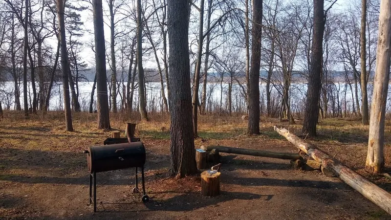 Для отдыха предоставляется участок 500 м. кв. оборудованный шатром с москитной сеткой с деревянным настилом, столом и 4-мя стульями, костровищем, мангалом, с возможностью установки 2-х палаток и парковкой на 2 а/м пользованием санузлом, душевой, родником, пляжем, спортивной и детской площадками.