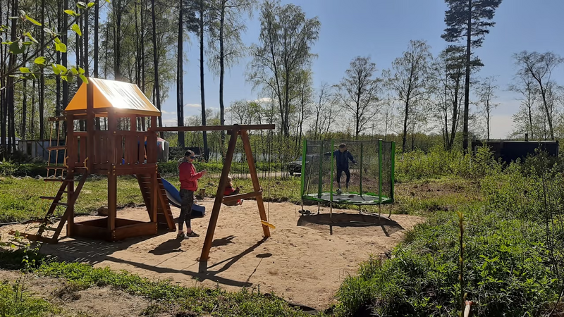 Рядом с каждым коттеджем имеется собственная территория, площадью около 600 кв. м. Подобная планировка создает все условия для уединенного и спокойного отдыха.