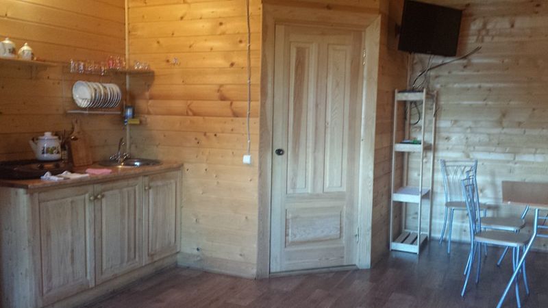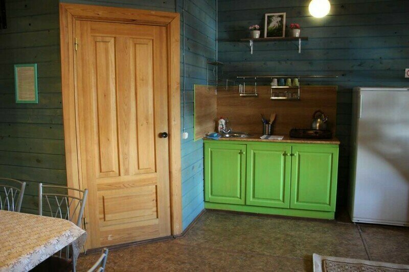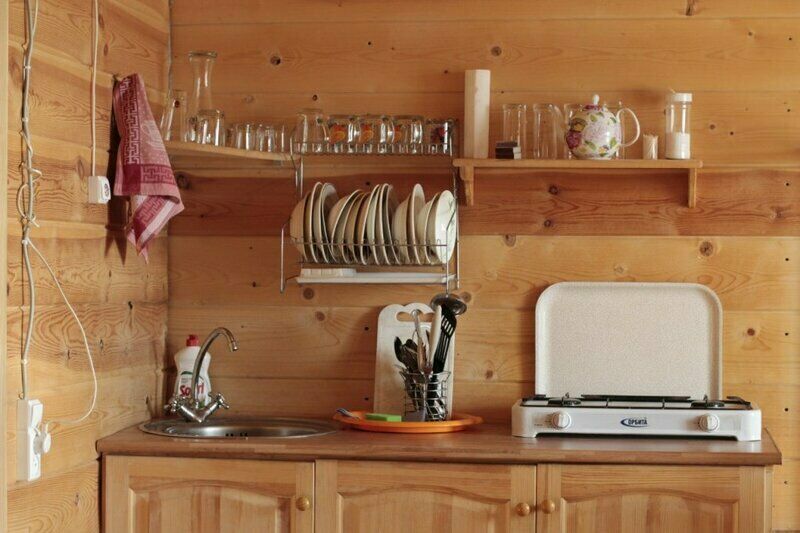 - Кухня (плита, холодильник, раковина, полный комплект посуды)