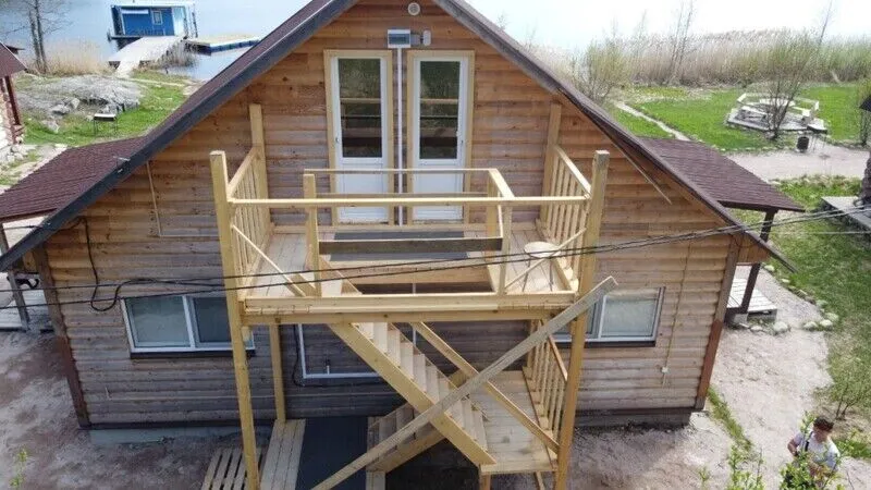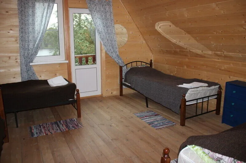 Для размещения гостей оборудованы 5 уютных деревянных коттеджей с видом на озеро, рассчитанных на компании от 4 до 9 человек.
