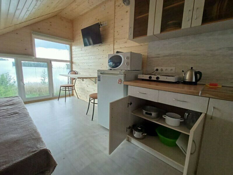Семейный отдыхДостоинстваВсё очень понравилось! Замечательное место, очень рекомендую всем! Спасибо Константину, хозяину базы и его сыну Василию. По любому вопросу всё решалось моментально. Отдых удался! Озеро чудесное, цвели лилии, красота неописуемая! Рыбалка удалась! Несколько пирсов, подход к воде от домика - метров 20. Вид из панорамного окна завораживает!