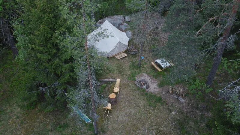 Этот уютный кемпинг располагается рядом с базой, до озера меньше 100 м. В кемпинге есть электричество, холодильник, плита и водопровод. Машину можно оставить в 20 м от кемпинга. Это прекрасный вариант для путешественников, которые не готовы так просто расстаться с комфортом.