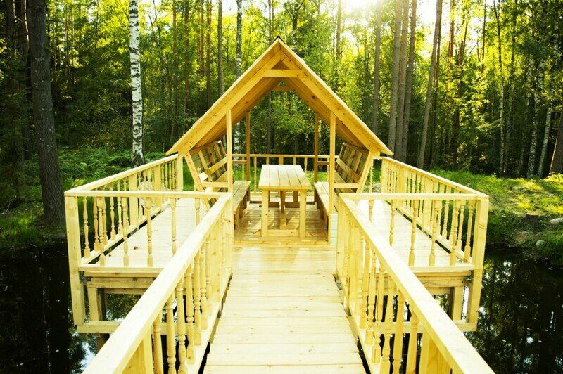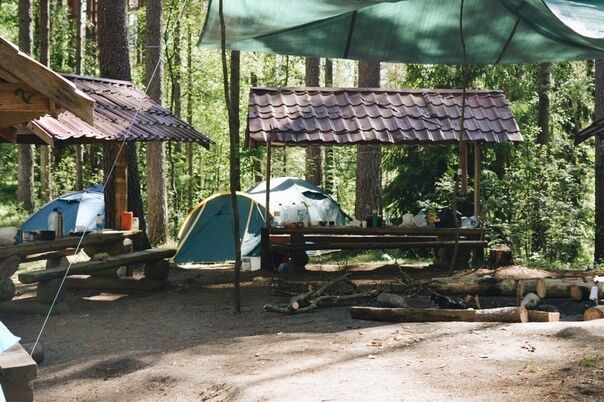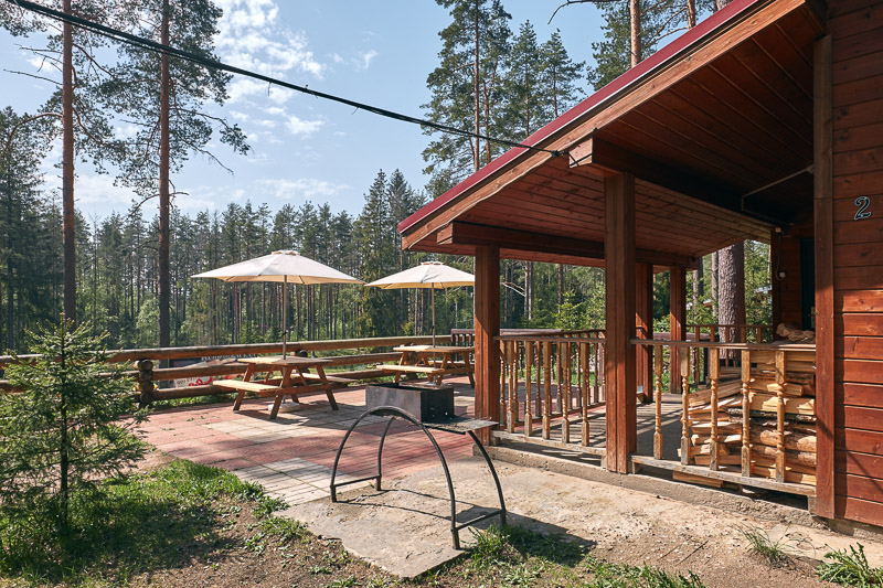 - На берегу расположены мангалы, столики, гамаки, беседки.