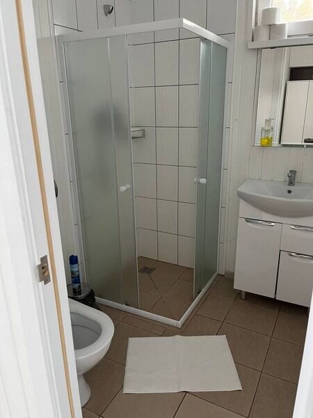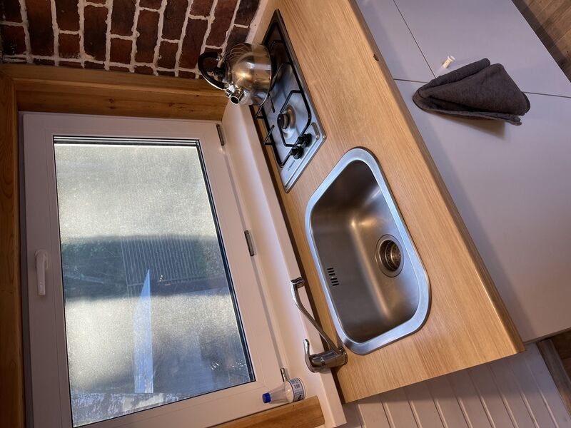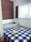 В номере: одна двуспальная кровать, один двуспальный диван, печь, оборудованная кухня, холодильник, телевизор, постельное белье, вся необходимая посуда, душ/туалет.