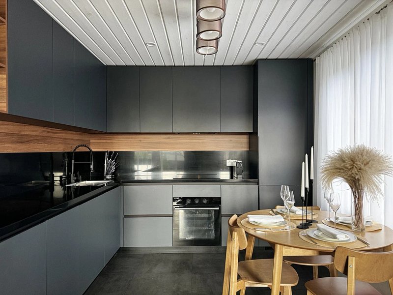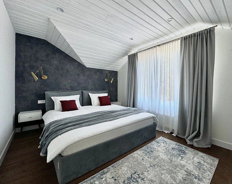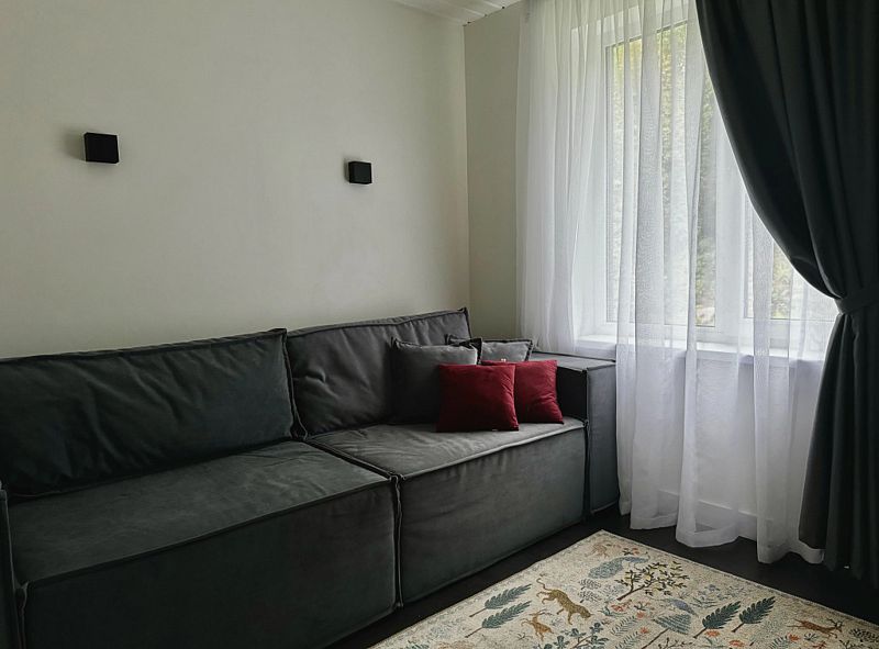 В доме 4 изолированные спальни, две ванные комнаты (на первом и втором этаже). Гостиная с большим диваном, домашним кинотеатром. На кухне есть все, что нужно для семейного ужина/торжества.
