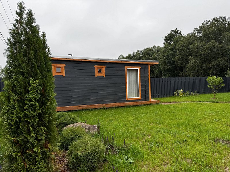 Загородный дом (120 к.м.)с уютной террасой и русской баней на дровах, расположенный в окружении чистых озер, экотроп и живописного соснового леса.