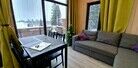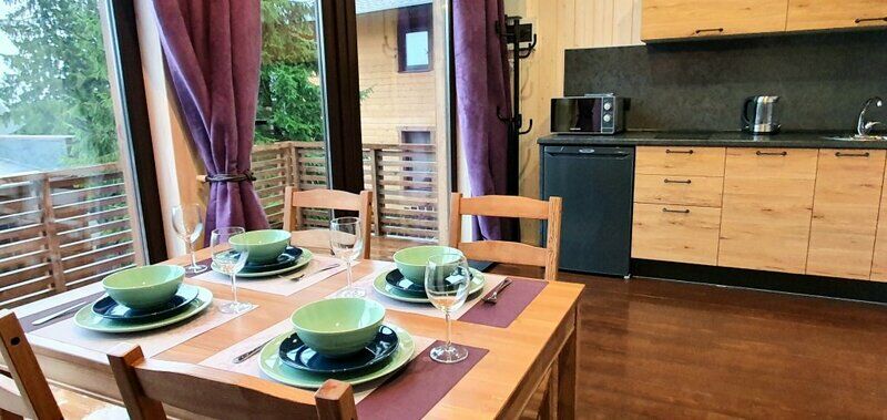 Кухня-гостиная: раскладной диван 140*190, полноценная кухня, обеденный стол, холодильник, варочная панель, микроволновая печь, эл. чайник, вся необходимая посуда для приготовления еды.
