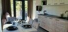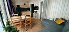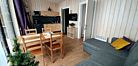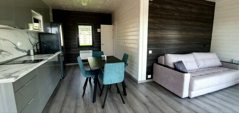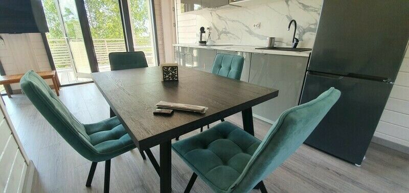 Кухня-гостиная: раскладной диван (140*200), полноценная кухня, обеденный стол, холодильник с морозильной камерой, посудомоечная машина, капсульная кофемашина, варочная панель, микроволновая печь, эл. чайник, вся необходимая посуда для приготовления еды.