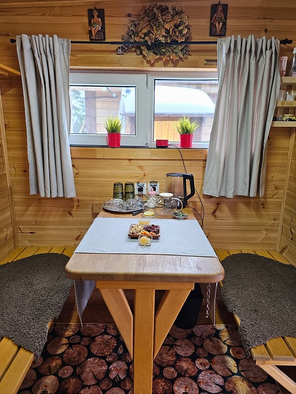 Инфраструктура: тапочки, купель, зона отдыха, простыни, обливное ведро, душ, дубовые веникиМинимальное время аренды: 2 часаТрадиционная баня оформленная в русском стиле. Ароматная парная рассчитана на комфортное пребывание до 4-х гостей.