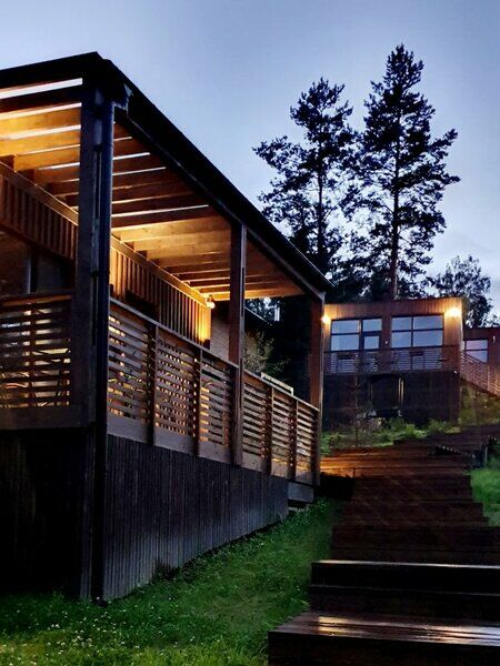 КП «Сосновские горки» 2 дома Family House и Small House - потрясающая, уединенная локация, которую можно арендовать полностью. Видовые террасы на сосновый лес.