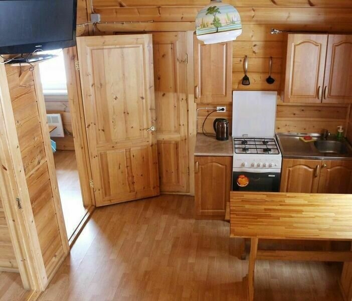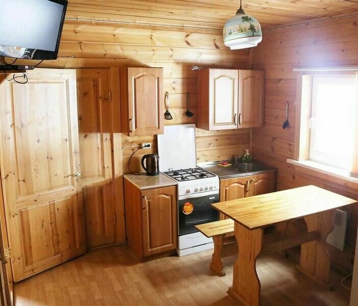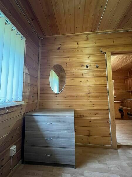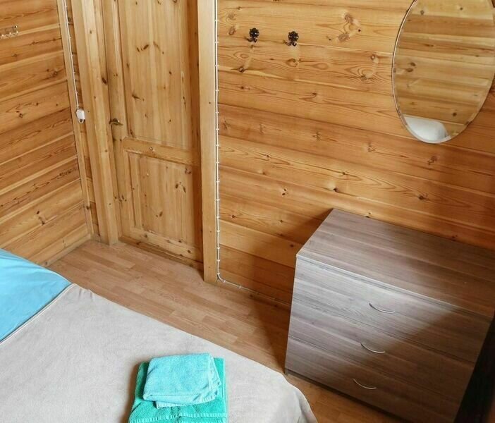 Дом площадью 36 метров, каркасный. Общая численность гостей до 6 человек. В доме 2 раздельные спальные комнаты, в каждой комнате стоит двуспальная кровать, и диван книжка в кухне-гостиной (раскладной на 2 человека).