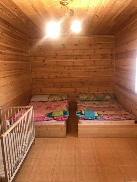 Веранда на крыльце, теплый пол. Две изолированные спальни, в каждой по двуспальной кровати.