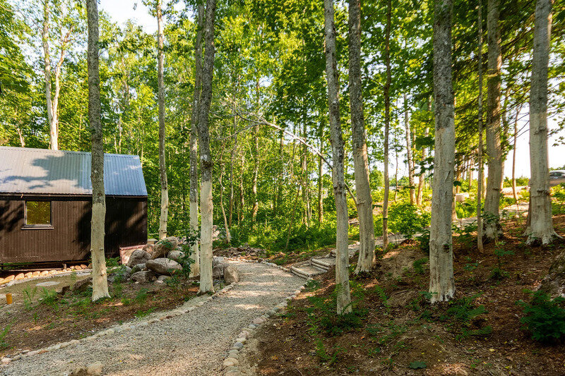Прямо от домиков начинается лес, такой настоящий с буреломами и грибами, низинами и горками.