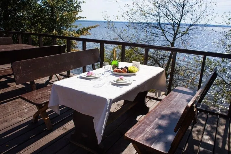 Читать полностьюНа территории комплекса работает ресторан на 60 посадочных мест. Ресторан находится на берегу озера. Имеет открытую террасу с видом на воду.