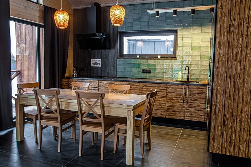 Кухня оснащена всем необходимым: посудомоечной машиной, стиральной машиной, микроволновой печью, холодильником и варочной поверхностью, чтобы вы могли чувствовать себя как дома. Теплые полы по всей площади дома.