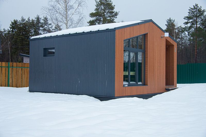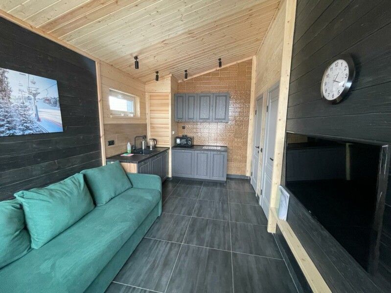 Дом площадью 36 квадратных метpов paсполагает одной спaльней и уютной кухней-гостиной.