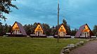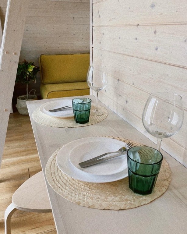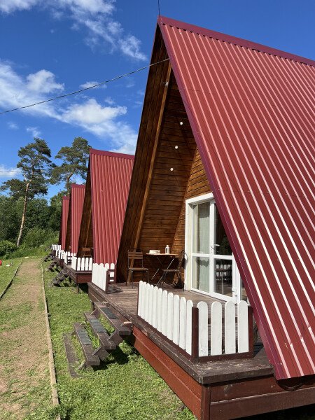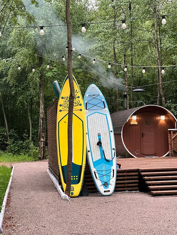 На территории несколько домиков А-фрейм, коттеджи, баня-бочка, гриль-домик, волейбольная площадка и мангельные зоны. Доступна аренда велосипедов, сап-бордов, лодок, настольные игры, проектор и многое другое