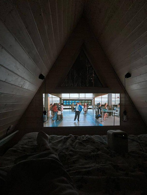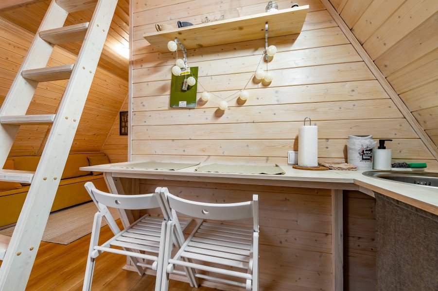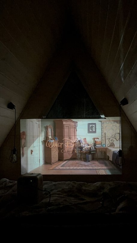 Мансарды домиков примечательны тем, что легко превращаются в домашний кинотеатр, если воспользоваться миниатюрным проектором.