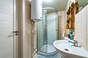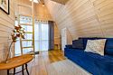 Уютных домик в синей цветовой гамме с видом на реку, где есть всё для комфортного проживания (40 м2).