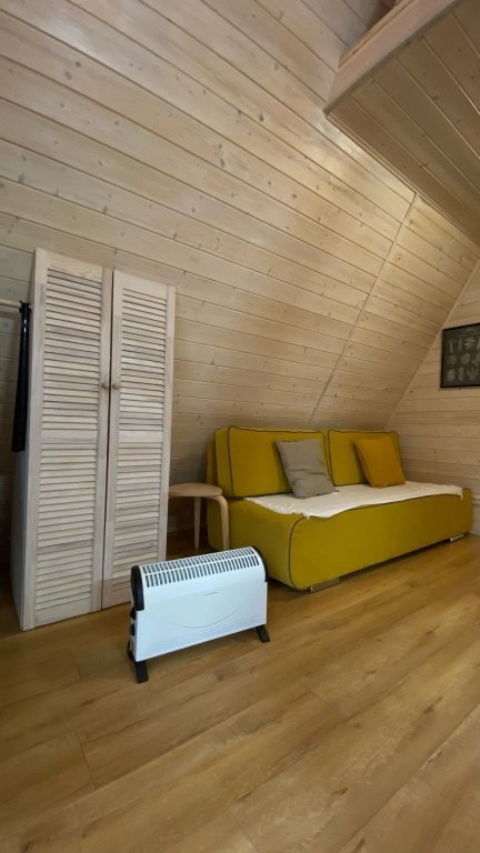 Уютных домик в желтой цветовой гамме с видом на реку, где есть всё для комфортного проживания (40 м2).