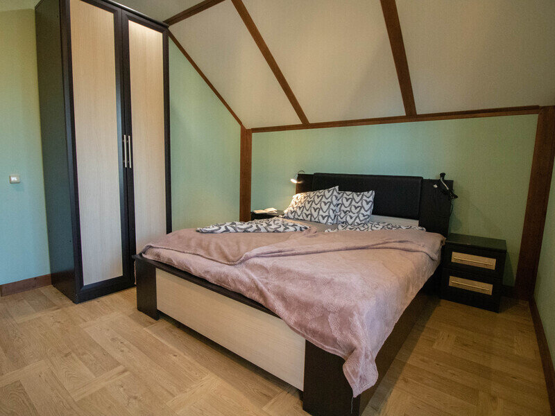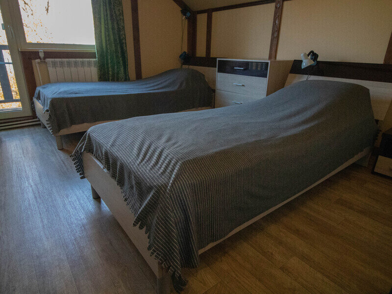 Заселение возможно в любое время поскольку стойка регистрации работает в круглосуточном режиме. В распоряжении проживающих несколько коттеджей на выбор, все они меблированы и оснащены самой необходимой техникой, которая может понадобиться на отдыхе. Для гостей, которые отдыхают с маленькими детьми предоставляются детские кроватки. В каждом доме две отдельные спальные комнаты в одной из которых одна двуспальная, а во второй две односпальные кровати. Также имеется гостиная с большим диваном и два санузла.