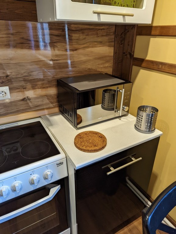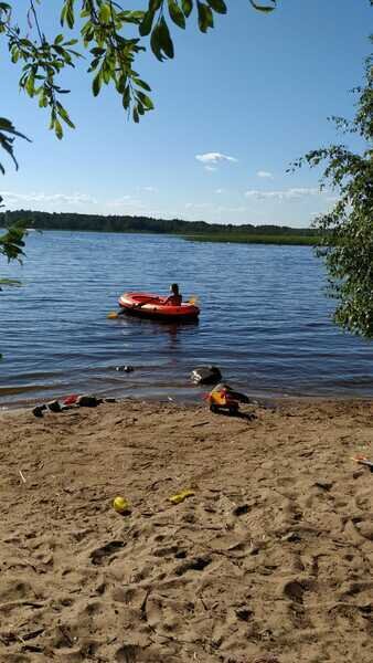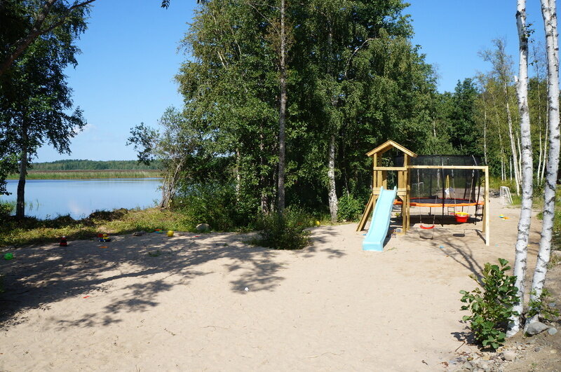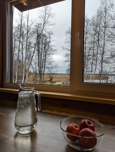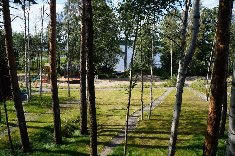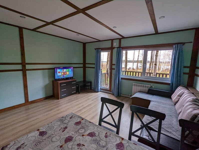 Готовить можно самостоятельно. На собственной кухне с помощью необходимой посуды и техники, гости могут приготовить себе домашние любимые блюда. Из окон открывается прекрасный вид на озеро и пляж, а также вековые сосны. Вход в озеро пологий, поэтому купание будет безопасным даже для тех, кто плохо плавает.