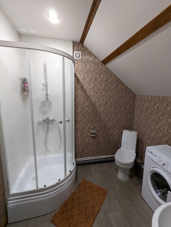 Есть дополнительная детская кроватка. Скорость интернета – 30-60 мбит/с. Возле домика – парковка для два автомобиля.