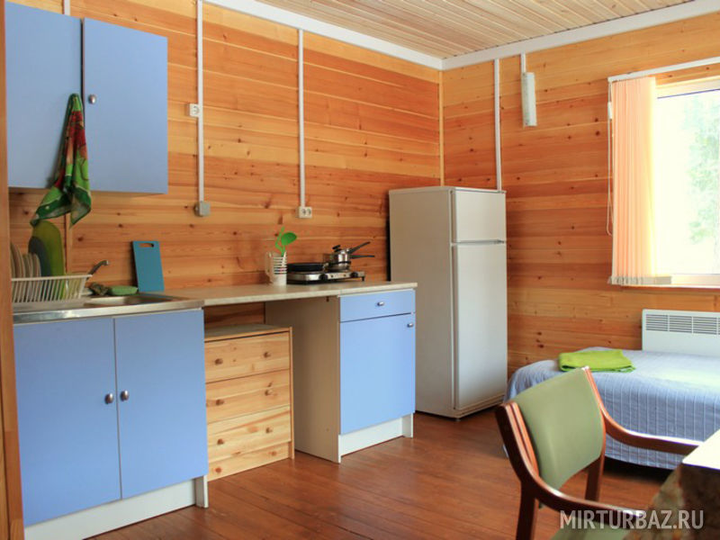 Чайник, холодильник, плитка, СВЧ-печь телевизор, полный комплект посуды, постельной белье, полотенца, теплый пол, душевая кабина, горячая/холодная вода круглосуточно. Около каждого коттеджа — беседка и мангал, шампура.