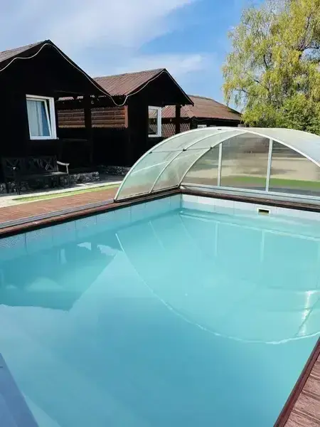 Тип бассейна: крытый бассейнВода в бассейне: подогреваемый бассейнРядом с бассейном: шезлонгиТемпература в бассейне: 0 °CПлощадь: 10 м²Время работы: от 09:00Глубина: 200 смБассейн работает круглогодично и накрыт пластиковым куполом. Зимой он подогревается и в нем приятно купаться в любую погоду. Летом подогрев отключен, но при этом температура воды остается комфортной. Основной уход за бассейном заключается в фильтрации воды 24/7, периодической чистке химическими препаратами, уборки осадка со дна чаши донным пылесосом.