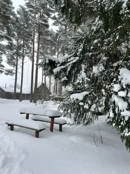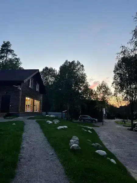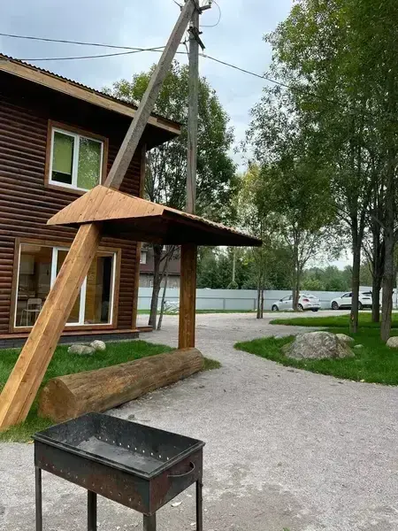 В коттедже не предусмотрено место для приготовления пищи, но есть общая мангальная зона и зона для отдыха около корпуса.