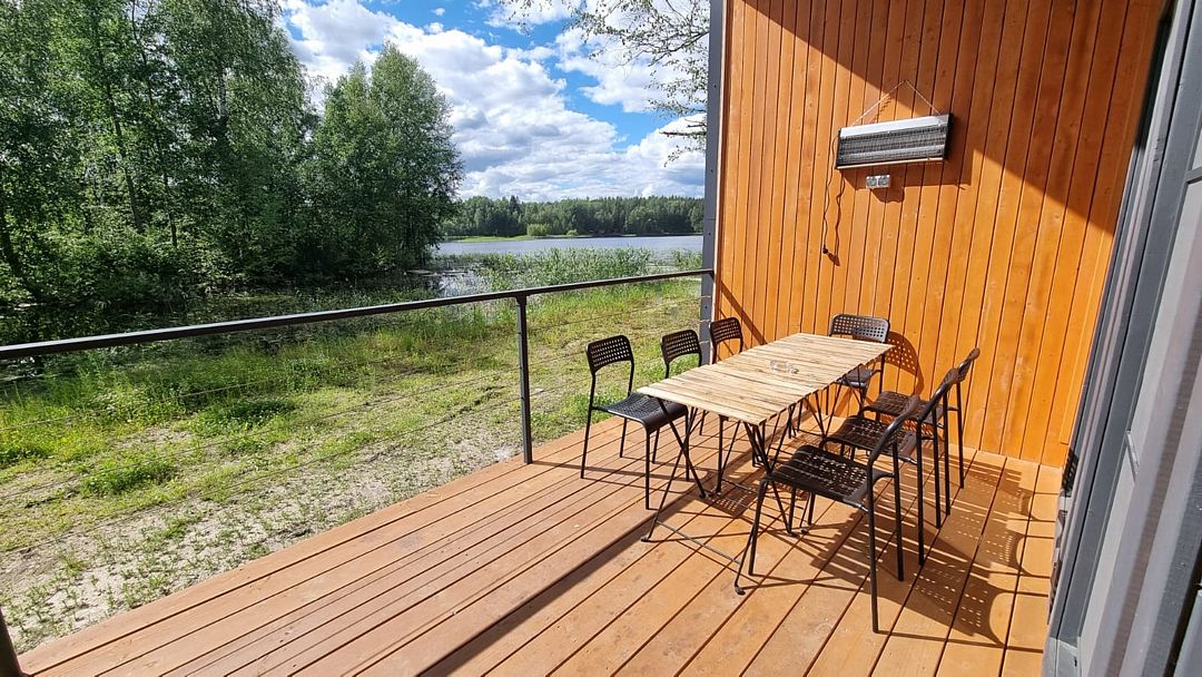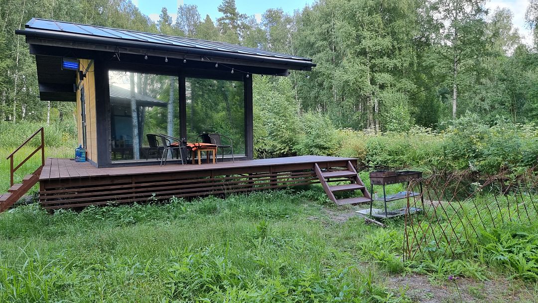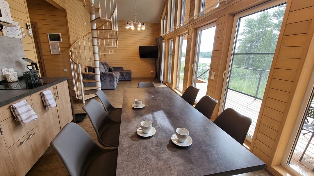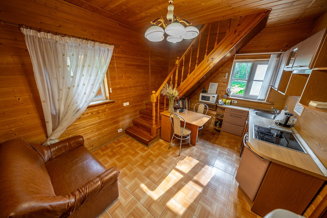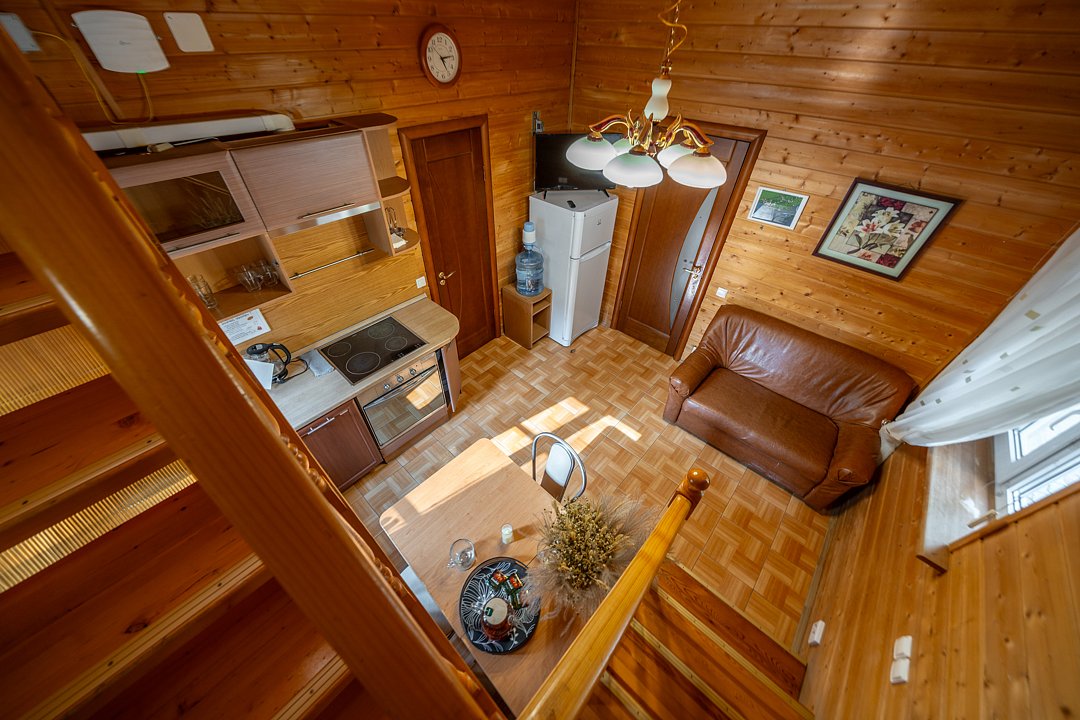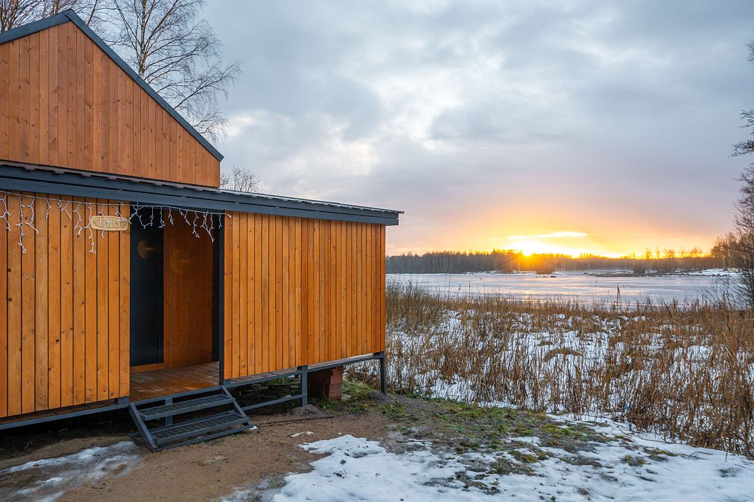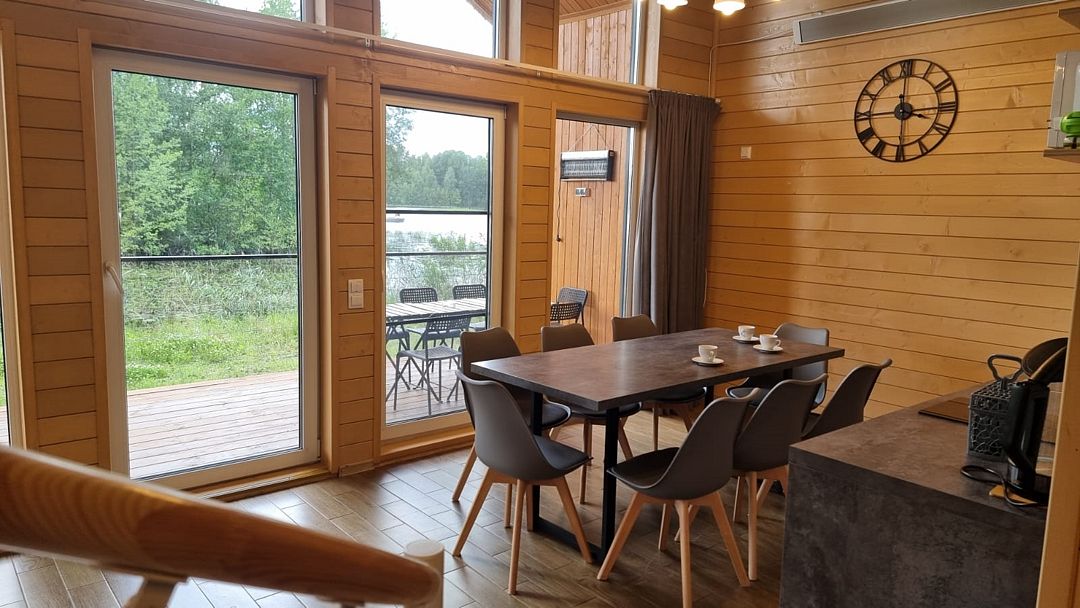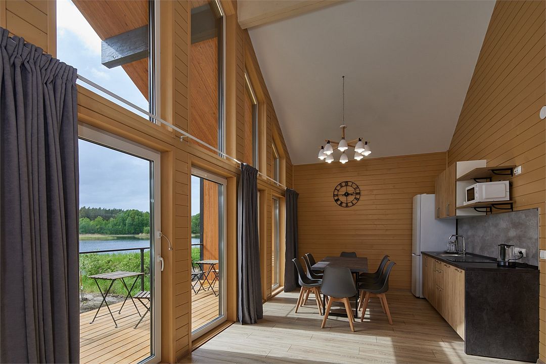 На мини-кухне можно приготовить вкусные закуски, а потом выйти на пирс и насладиться свежим воздухом. Вода в озере зовет вас на плавание, а окружающая природа создаёт атмосферу спокойствия и уюта.