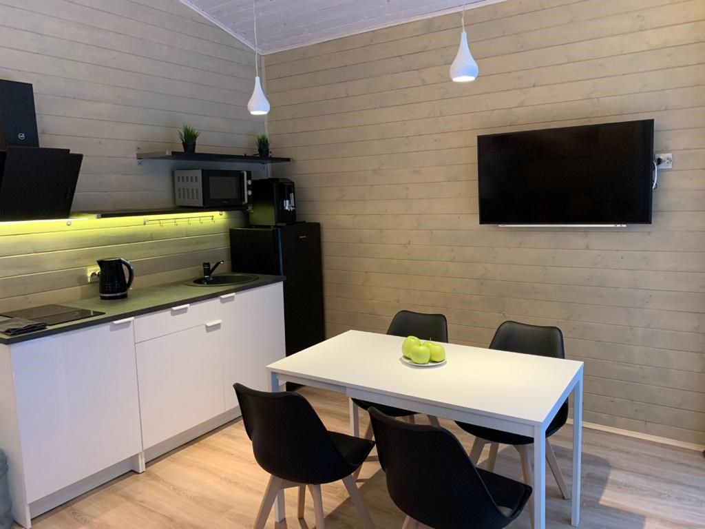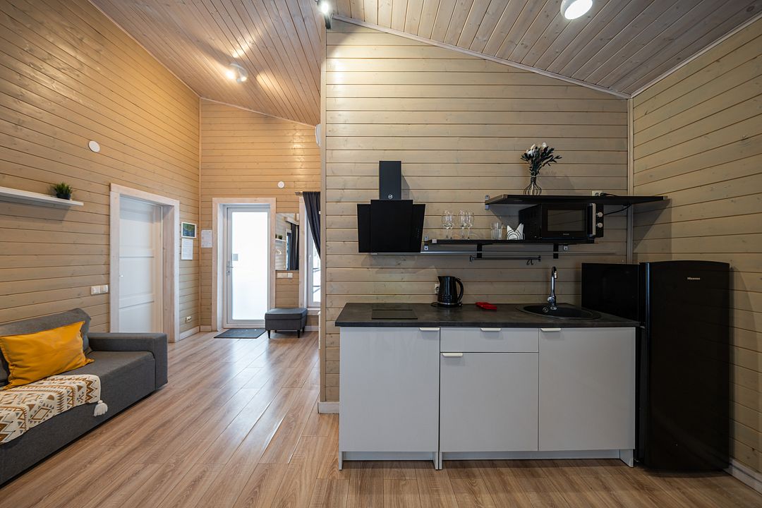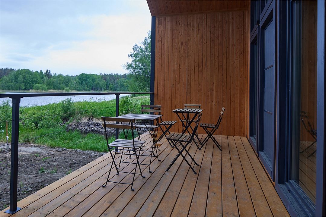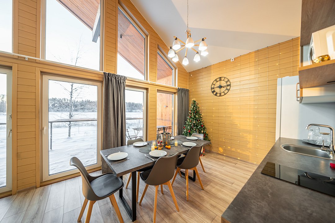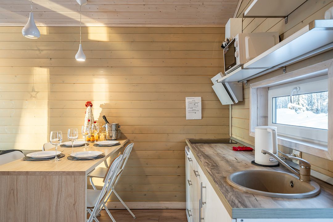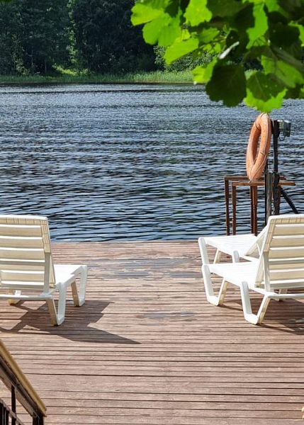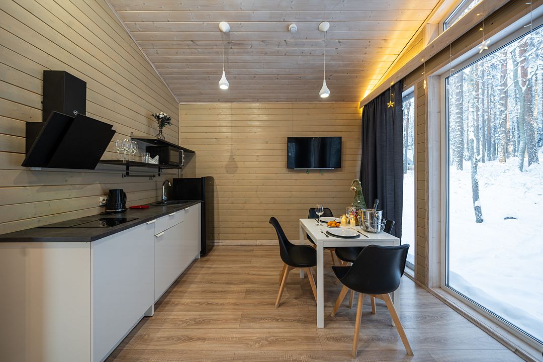 На мини-кухне можно приготовить вкусные закуски, а потом выйти на пирс и насладиться свежим воздухом. Вода в озере зовет вас на плавание, а окружающая природа создаёт атмосферу спокойствия и уюта.