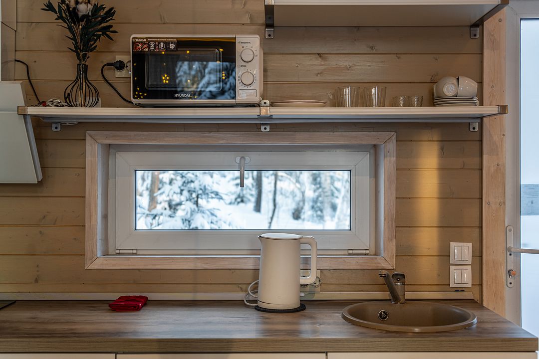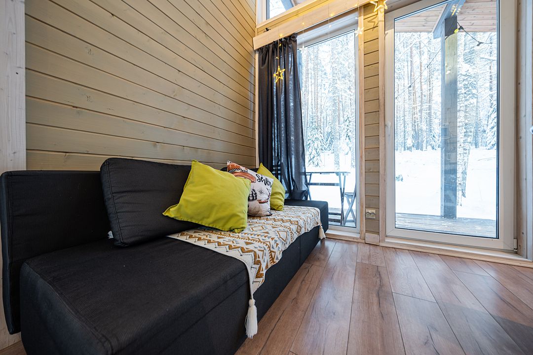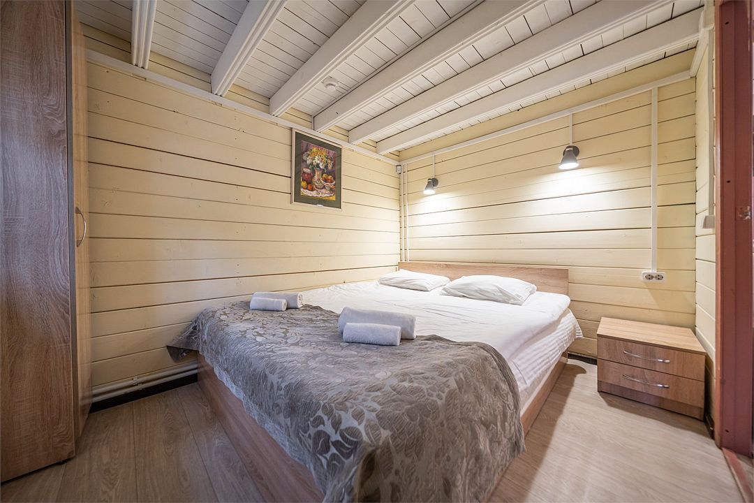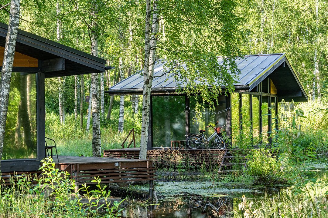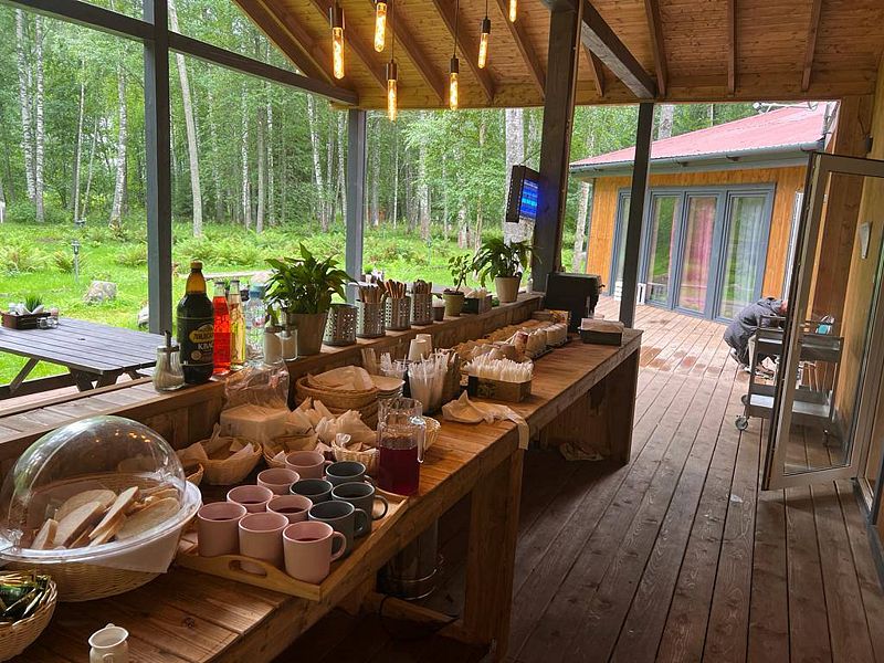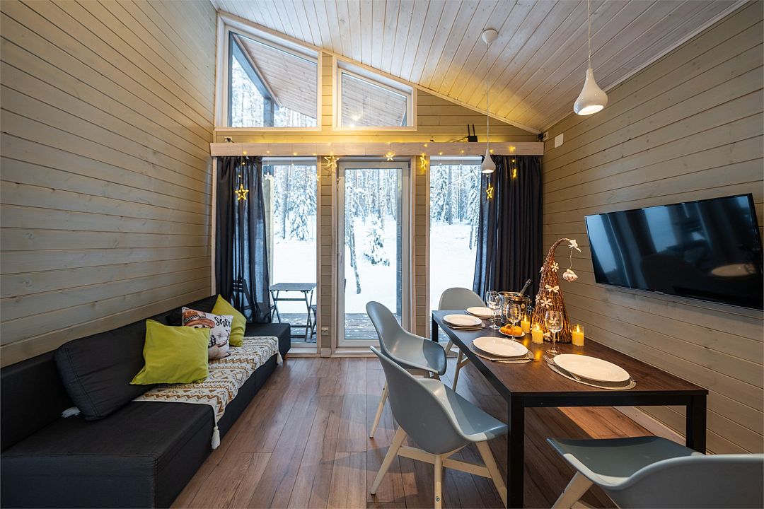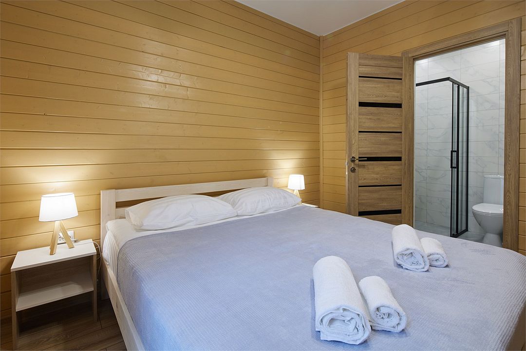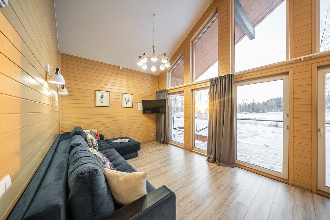 На мини-кухне можно приготовить вкусные закуски, а потом выйти на пирс и насладиться свежим воздухом. Вода в озере зовет вас на плавание, а окружающая природа создаёт атмосферу спокойствия и уюта.