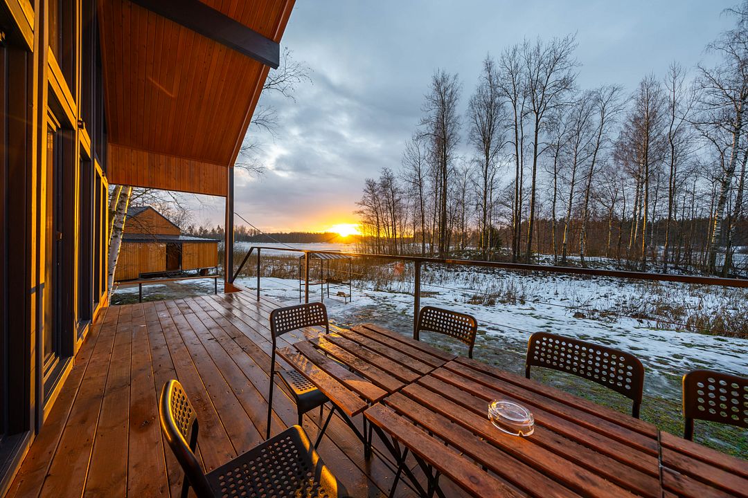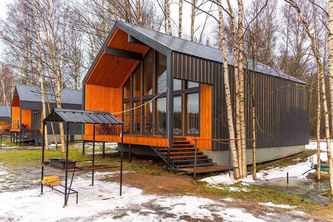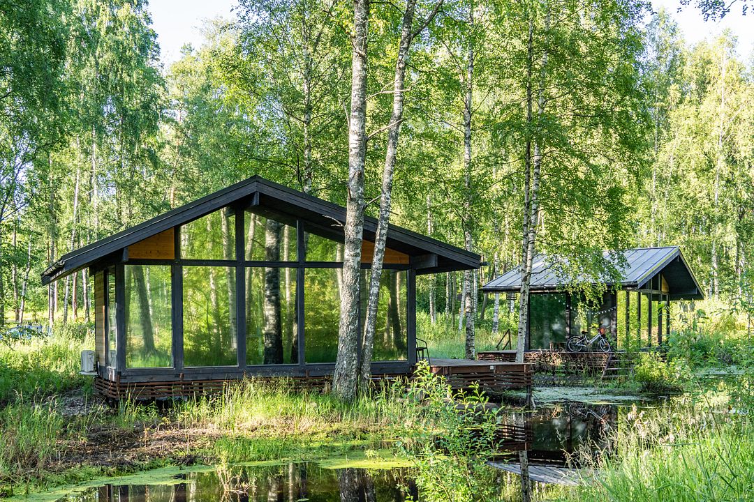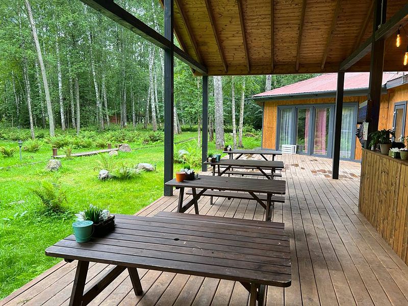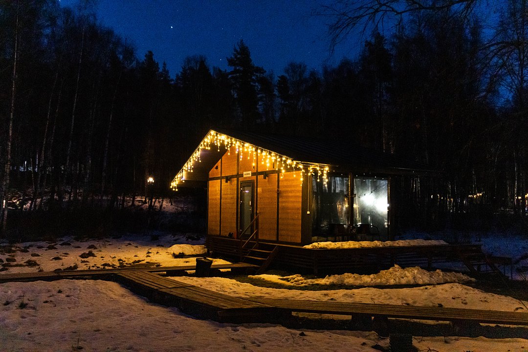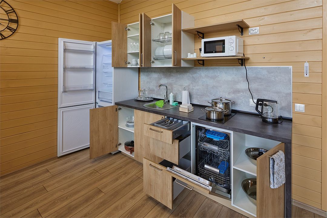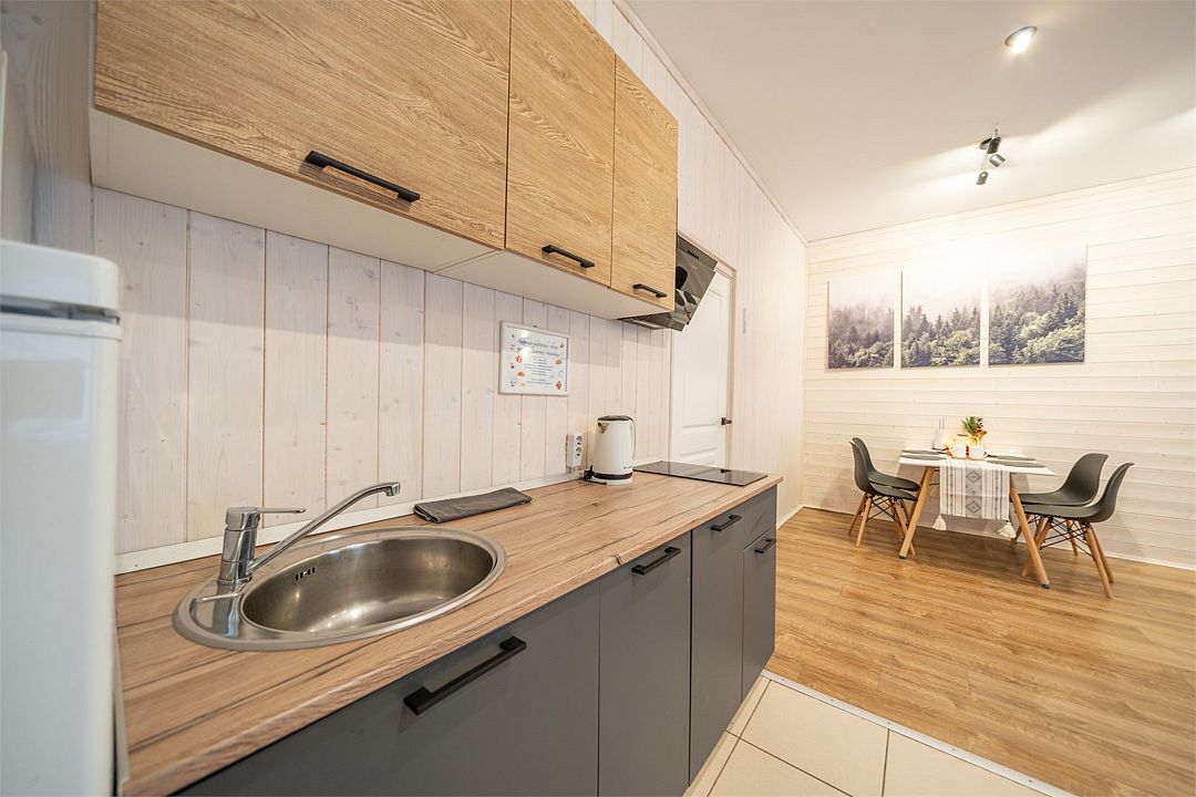 На мини-кухне можно приготовить вкусные закуски, а потом выйти на пирс и насладиться свежим воздухом. Вода в озере зовет вас на плавание, а окружающая природа создаёт атмосферу спокойствия и уюта.