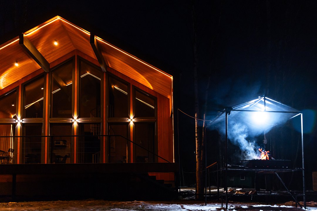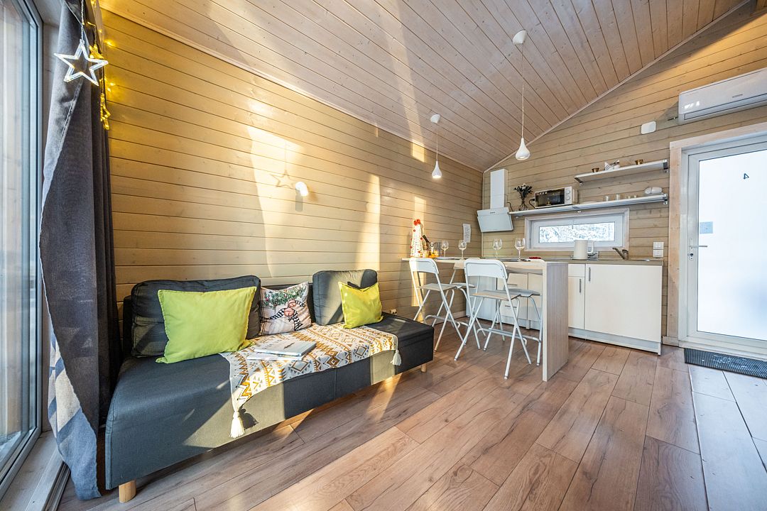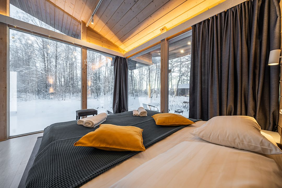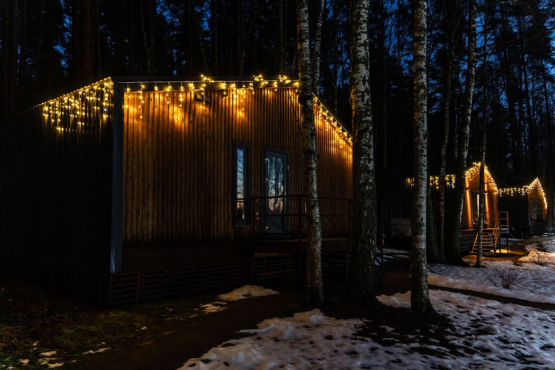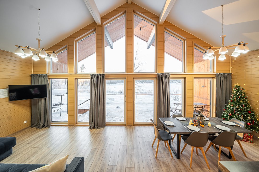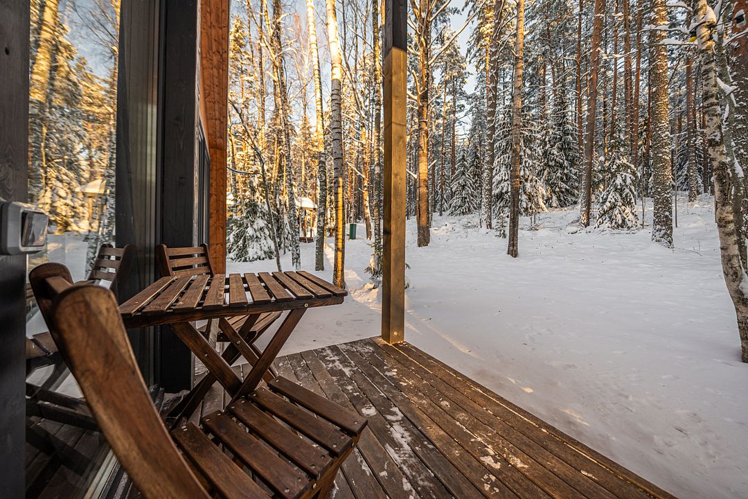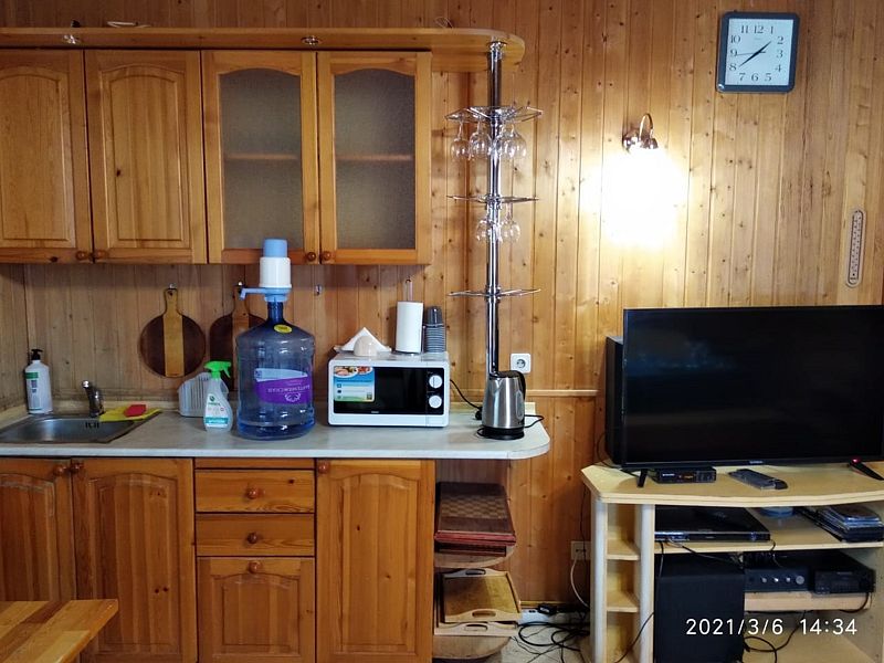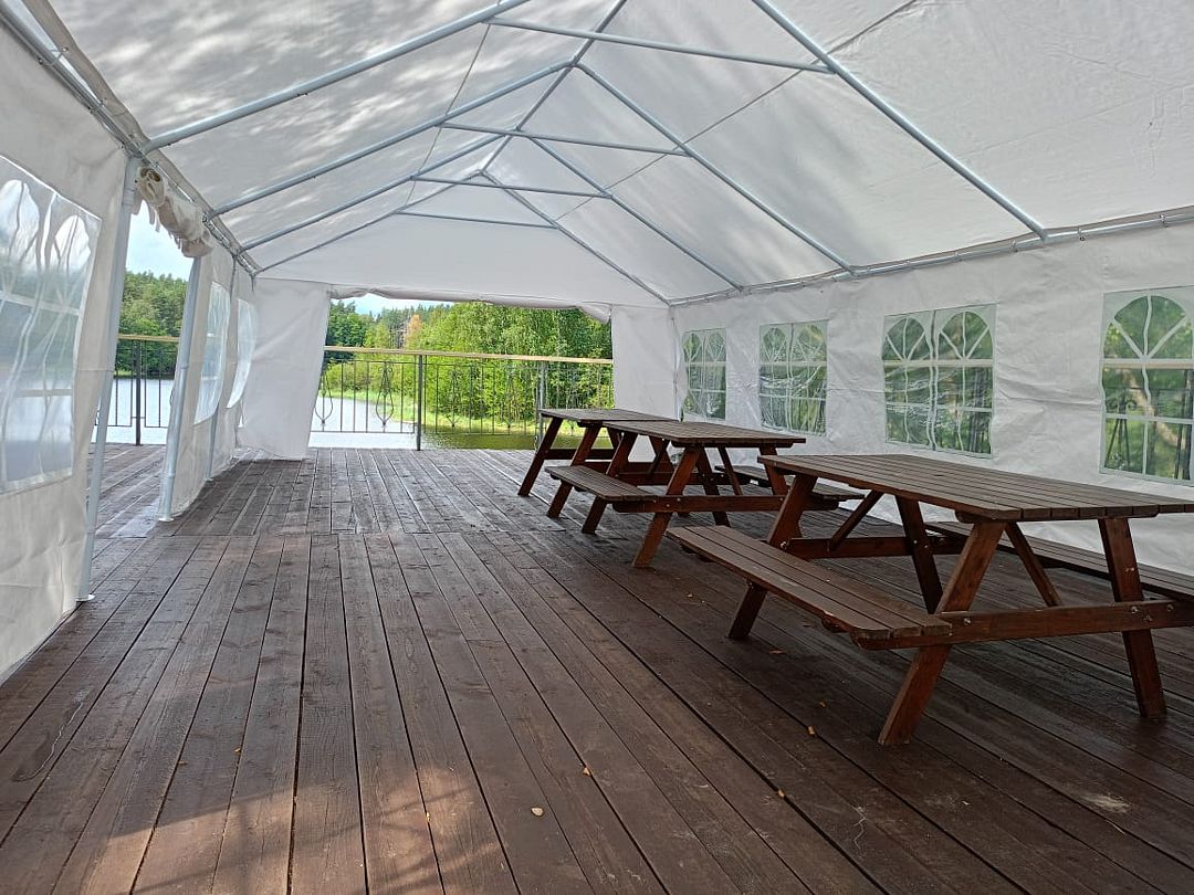 На мини-кухне можно приготовить вкусные закуски, а потом выйти на пирс и насладиться свежим воздухом. Вода в озере зовет вас на плавание, а окружающая природа создаёт атмосферу спокойствия и уюта.