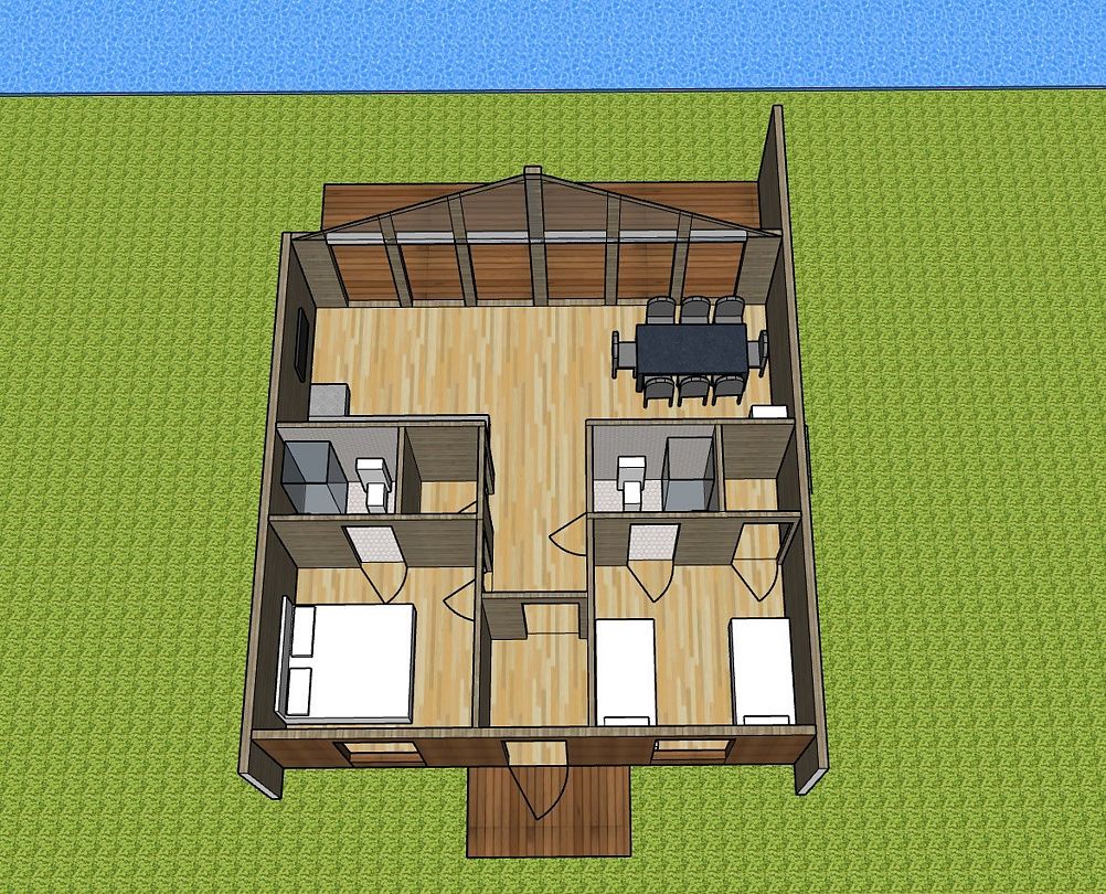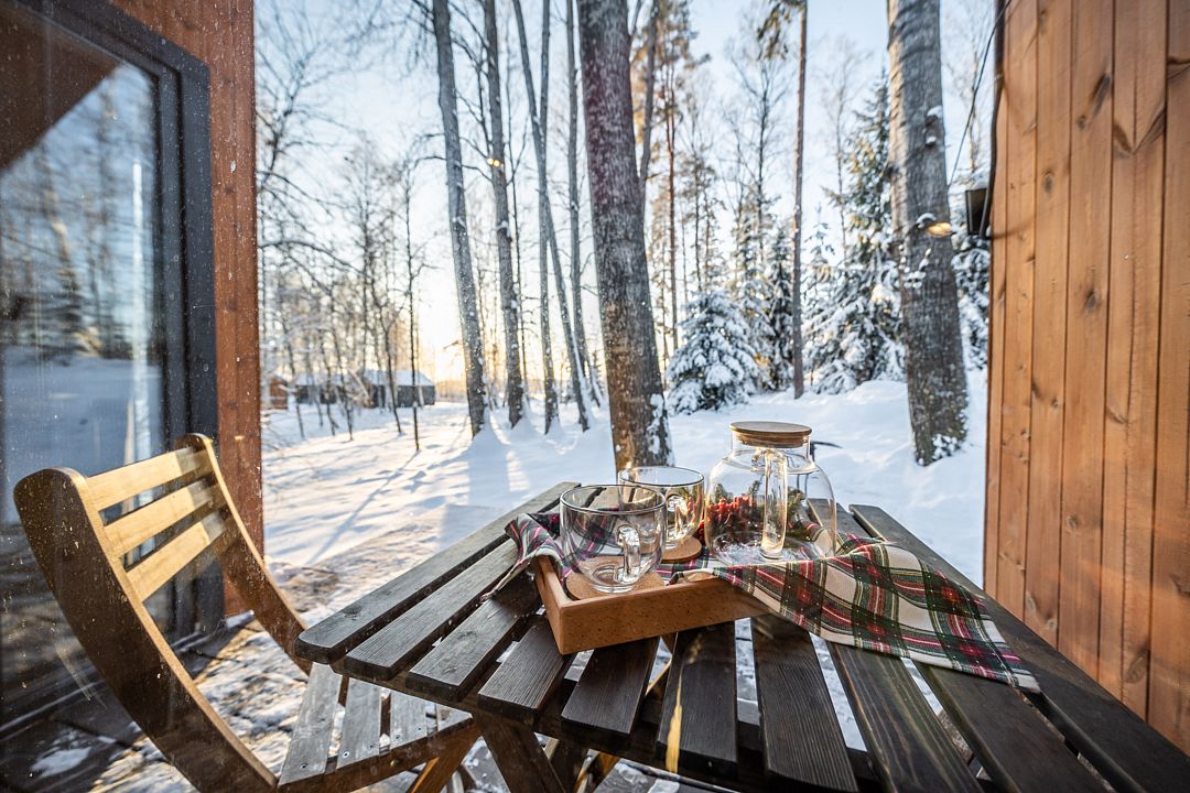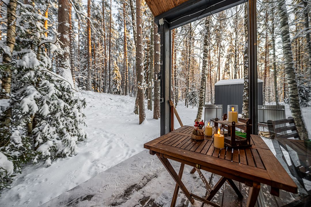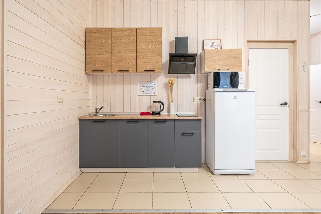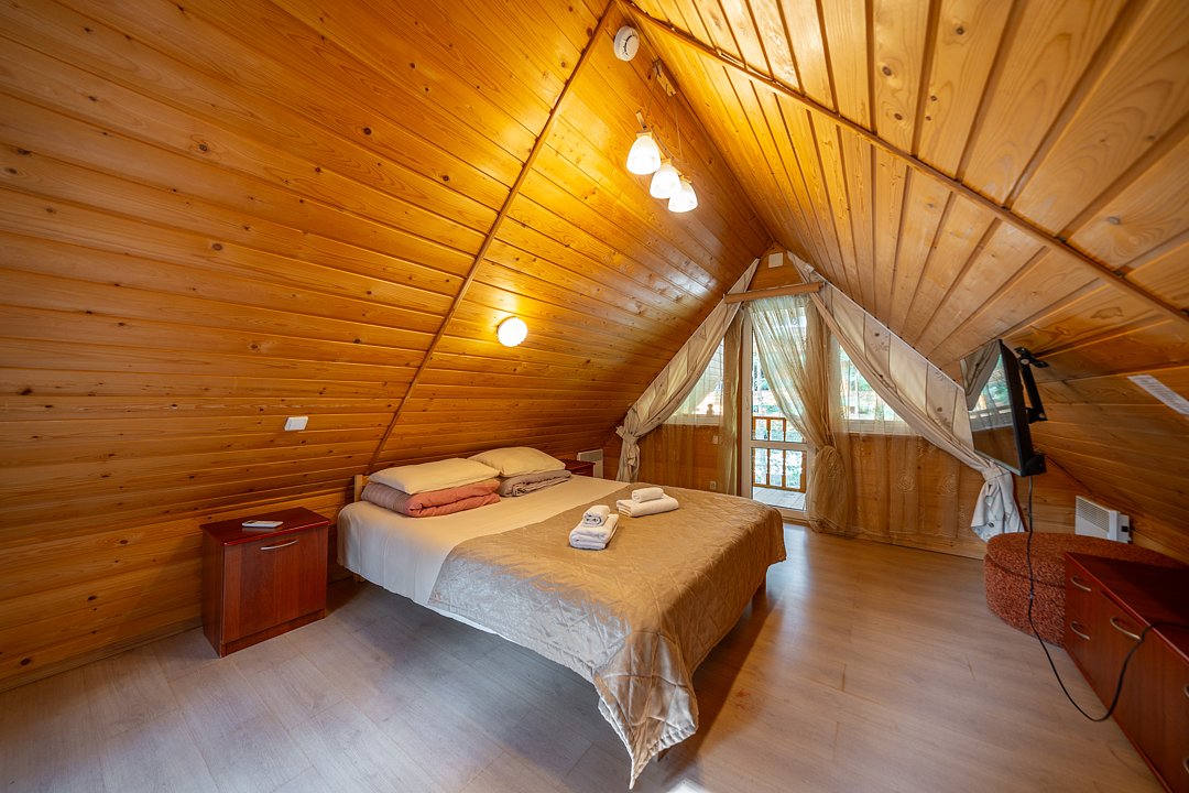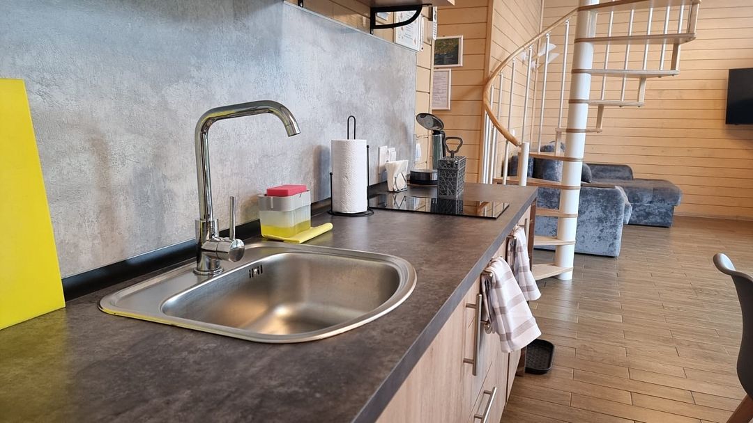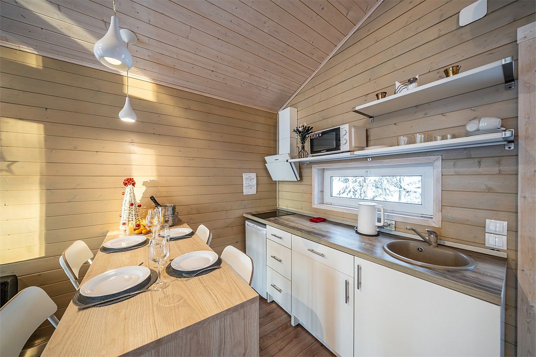 На мини-кухне можно приготовить вкусные закуски, а потом выйти на пирс и насладиться свежим воздухом. Вода в озере зовет вас на плавание, а окружающая природа создаёт атмосферу спокойствия и уюта.