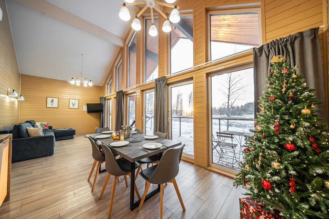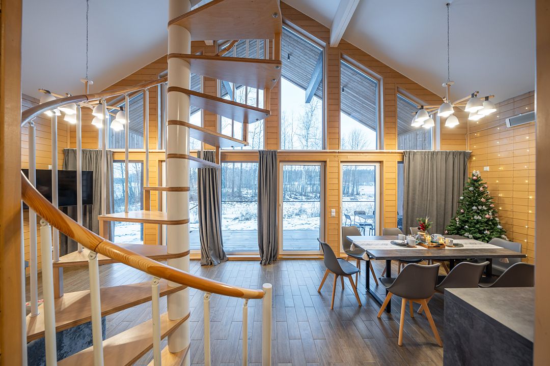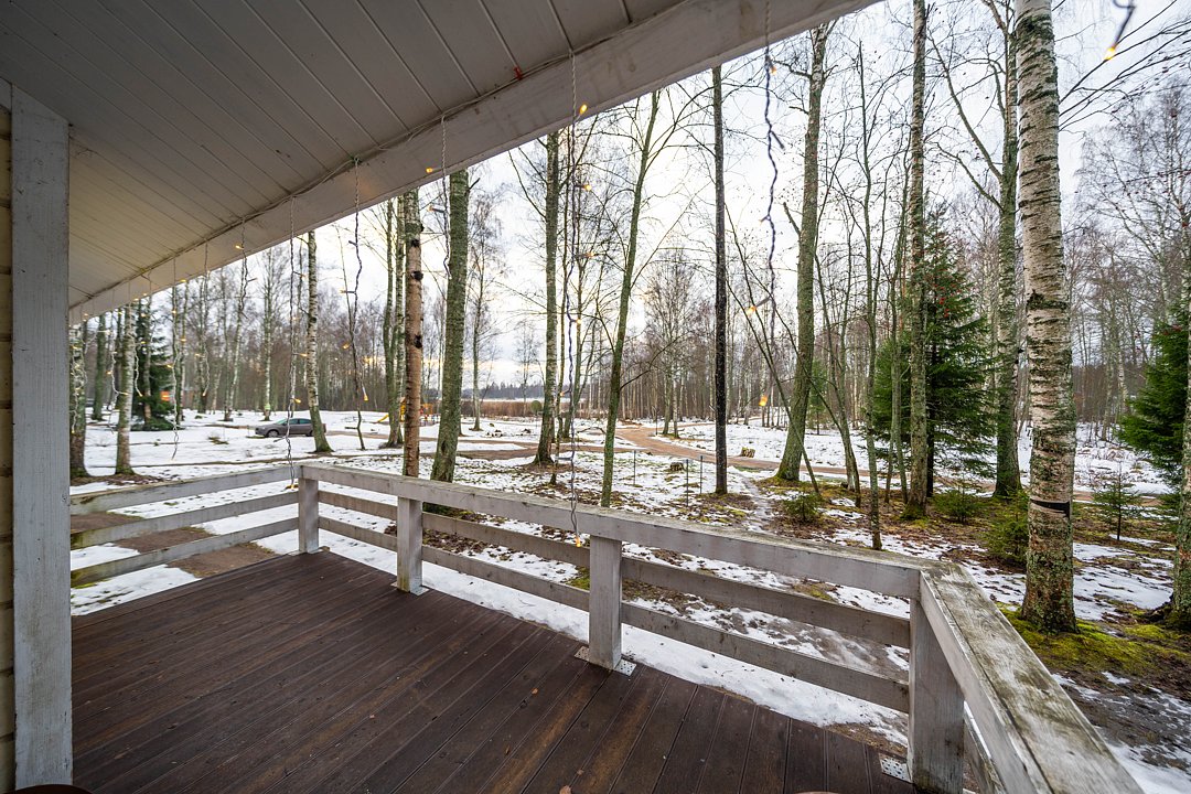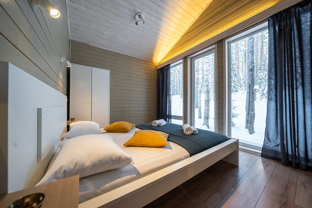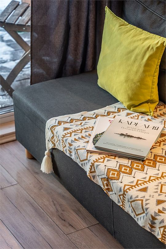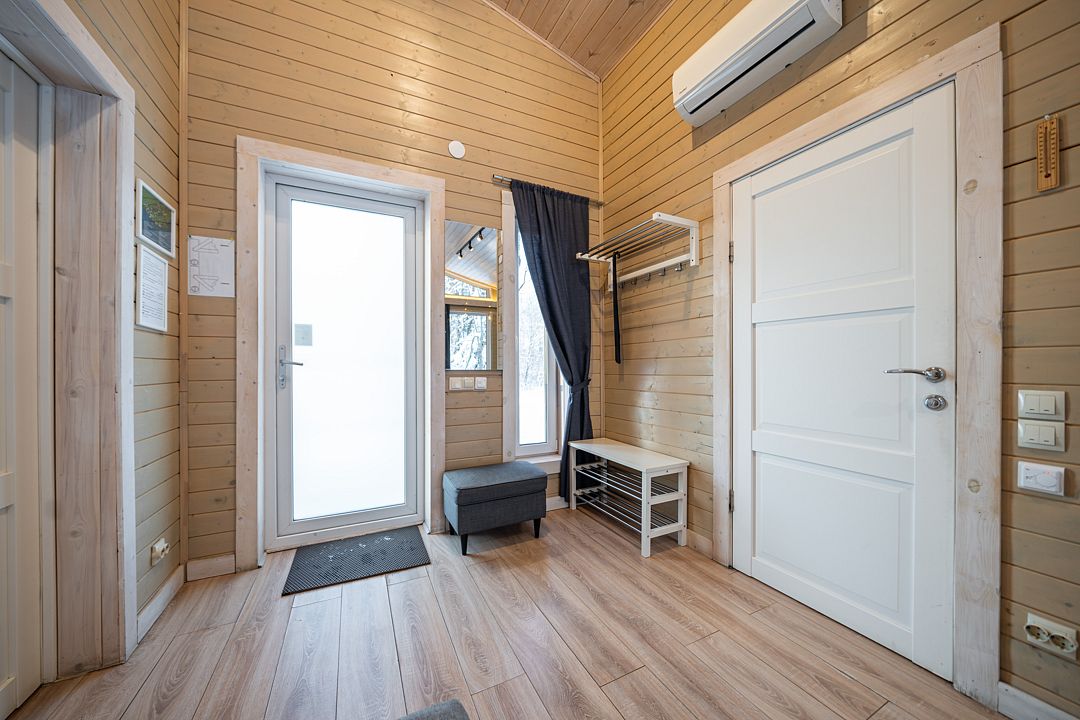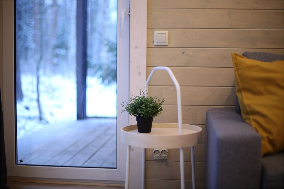 Из окон открывается прекрасный вид на о. Вуокса и лес. В 300 м находится уединенный пляж, где можно половить рыбу, искупаться и насладиться красотой природы Карельского перешейка. В интерьере домика гармонично сочетается простота с натуральными материалами в декоре.